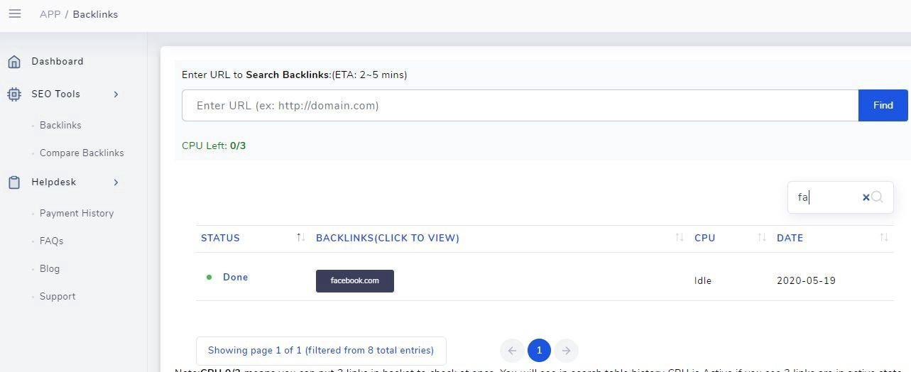 Note: CPU 0/3 means you can put 3 links in the basket to check at once. You will see in search table history CPU is Active if you see 3 links are in an active state that means you need to wait until one gets complete then you can put another link. You can search for unlimited links.